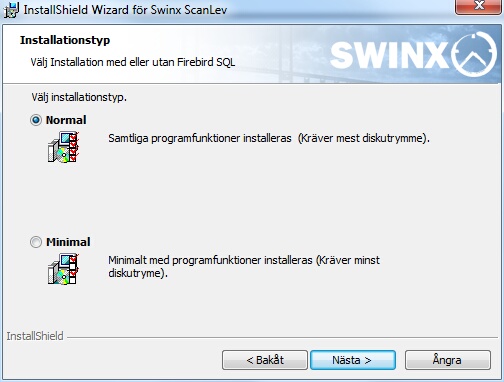 Välj Ja om inte Firebird SQL finns installerat sedan tidigare. Observera att ni måste köra version 2.5.x av Firebird för att SWINX ScanLev skall fungera. Om man väljer Ja, kommer Firebird SQL-installationen att starta. Skulle det uppstå något fel vid installationen, kontakta supporten på SWINX AB.