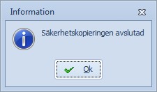 | 3. | Efter kopieringen så ska informationen Säkerhetskopieringen avslutad visas. |