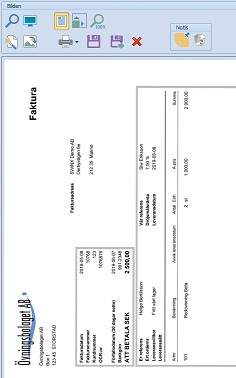 Om fakturan har hamnat på fel håll vid inskanningen kan man vrida bilden 90grader (medsols). Klicka flera gånger för att rotera ytterligare. Glöm inte att Spara ändringen.